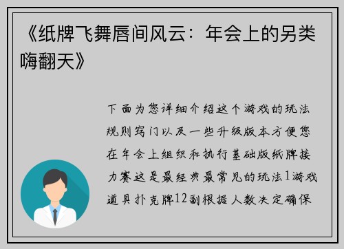 《纸牌飞舞唇间风云:年会上的另类嗨翻天》